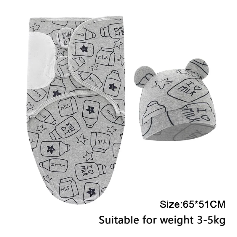 Baby Blanket Hat Set Cartoon Printed Cotton Newborn Swaddle Adjustable Infant Sleeping Swaddle Wraps All Seasons 0-6 Months
