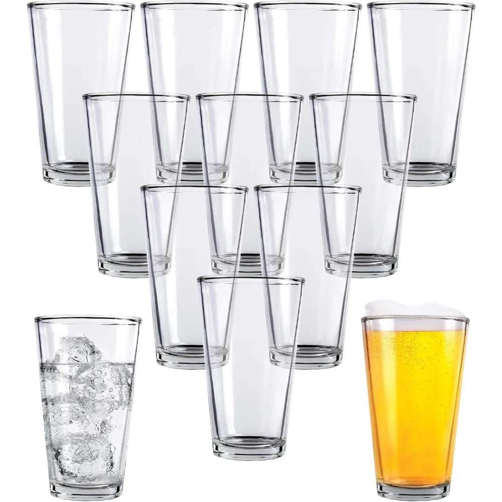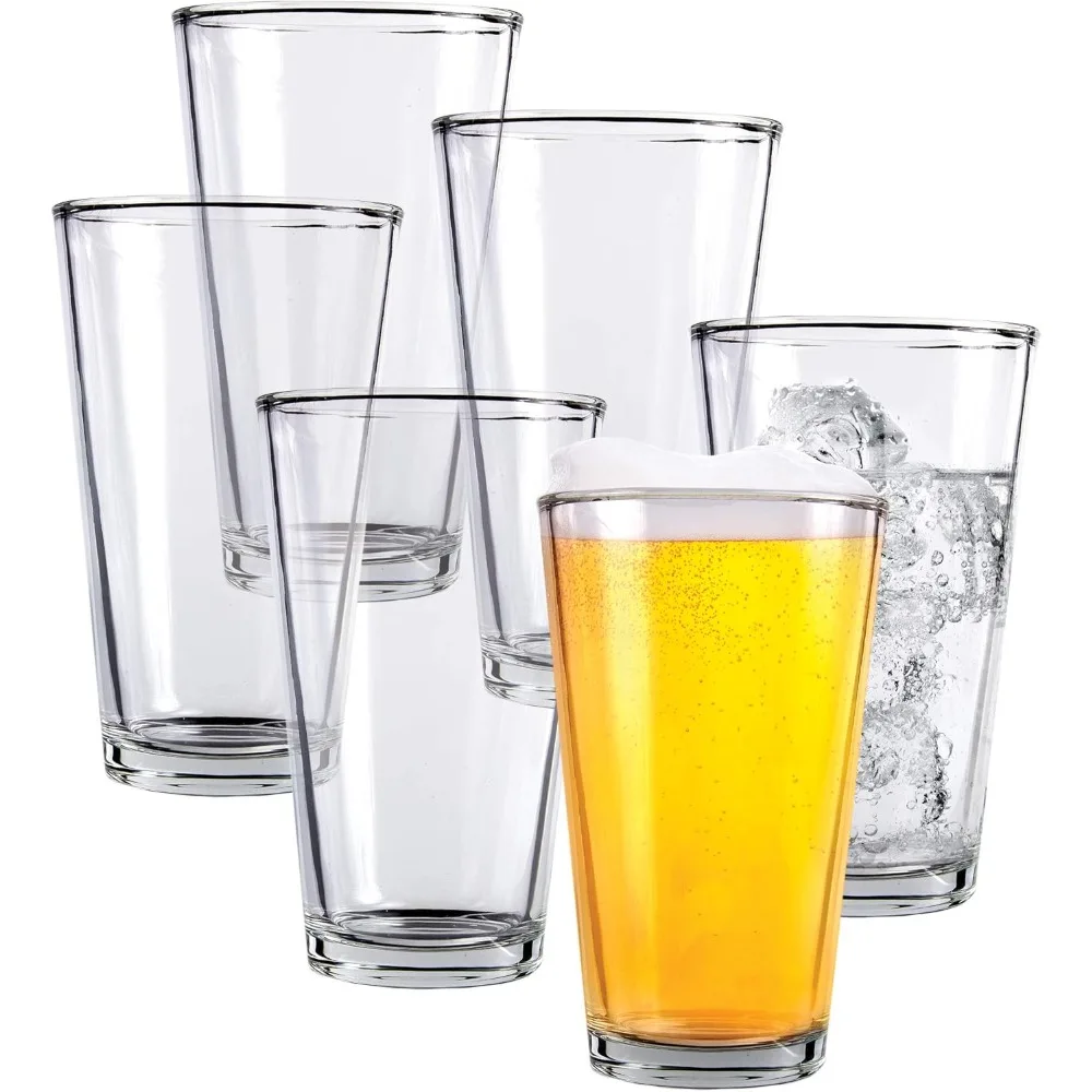 Beer Glasses Set of 6 – 16 oz Tall Clear Drinking Glasses and All Purpose Tumblers – Heavy Base Cocktail, Water, Juice Glass