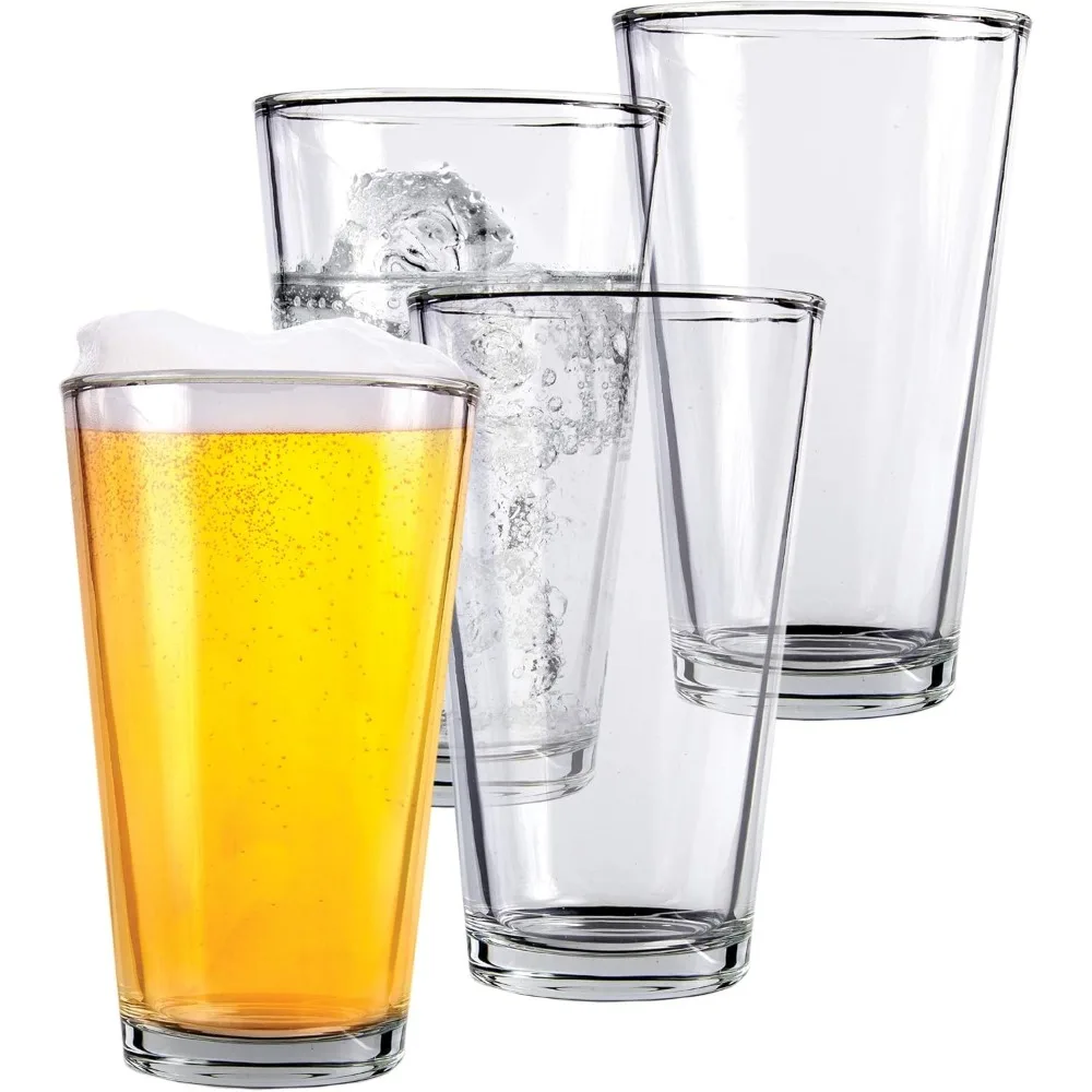 PREMIUM BEER MUGS FOR ANY SETTING: Drink your favorites in classic clear glass tumblers that offer a great drinking experience – Not just the perfect beer glass, these are great all-purpose drinking glasses for water, cocktails and all beverages!