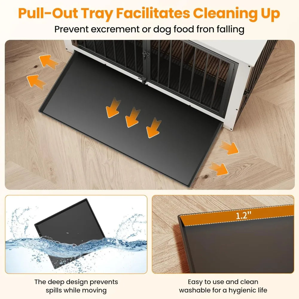 Dog Crate Furniture, Large Dog Crate Furniture, Wooden Cage Kennel Furniture Indoor, Modern Dog Crate with Multi-Purpose Removab