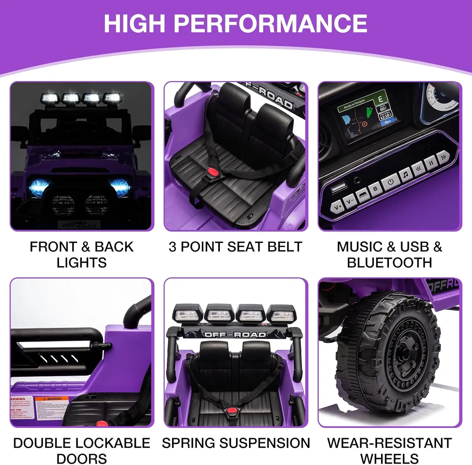 Safety Features for a Secure Ride Safety is key, and this SUV has you covered with a three-point seat belt to keep your child secure. The back suspension ensures a smooth ride, even on bumpy backyard paths. And with two doors that open easily, your child can hop in and out without any hassle.
