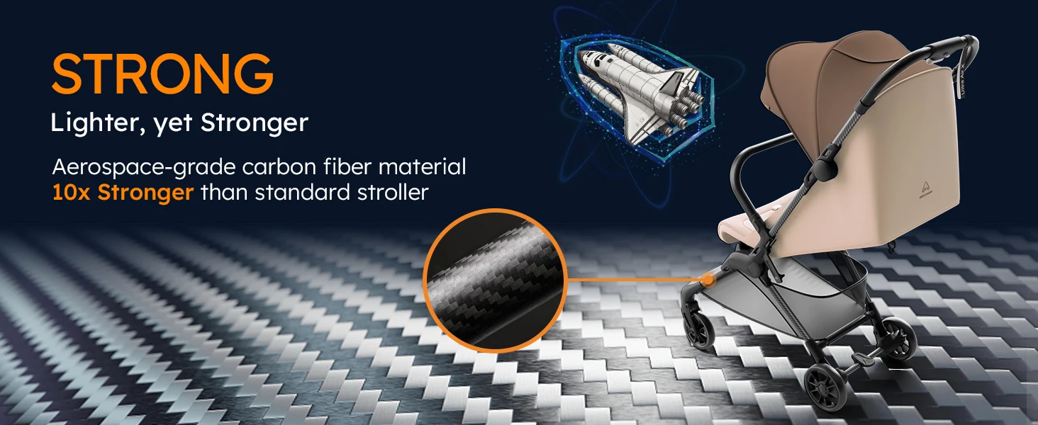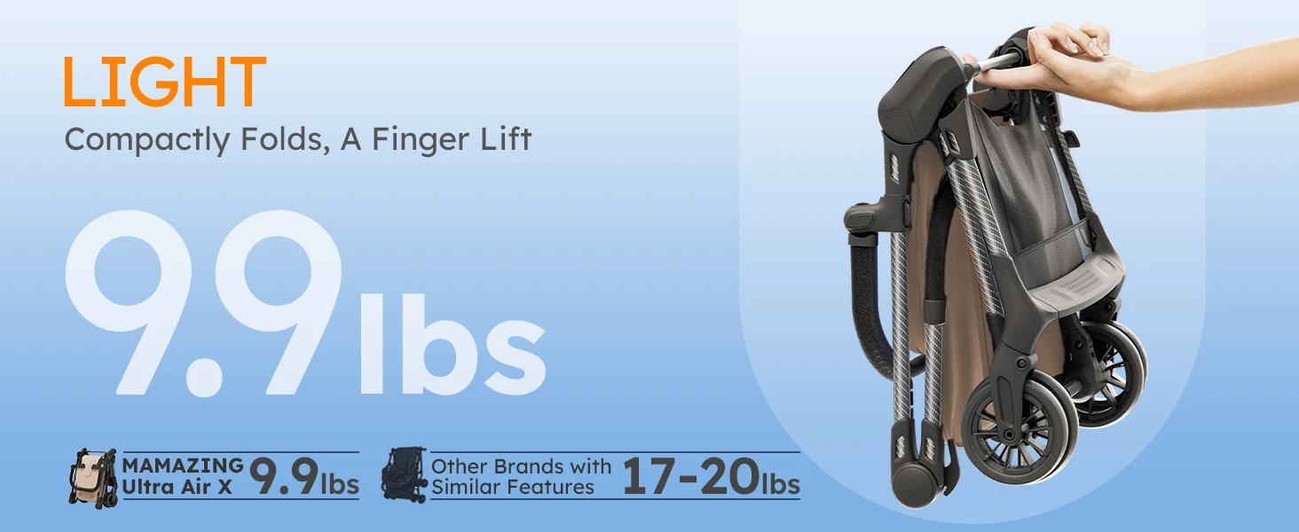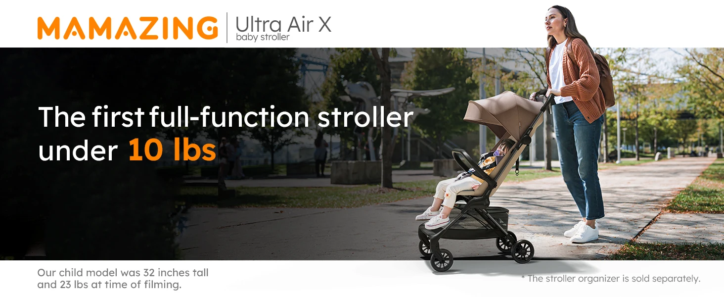 MAMAZING Ultra Air X Lightweight Travel Stroller 9.9lbs Carbon Fiber with UPF50+ Waterproof Fabric (BROWN)