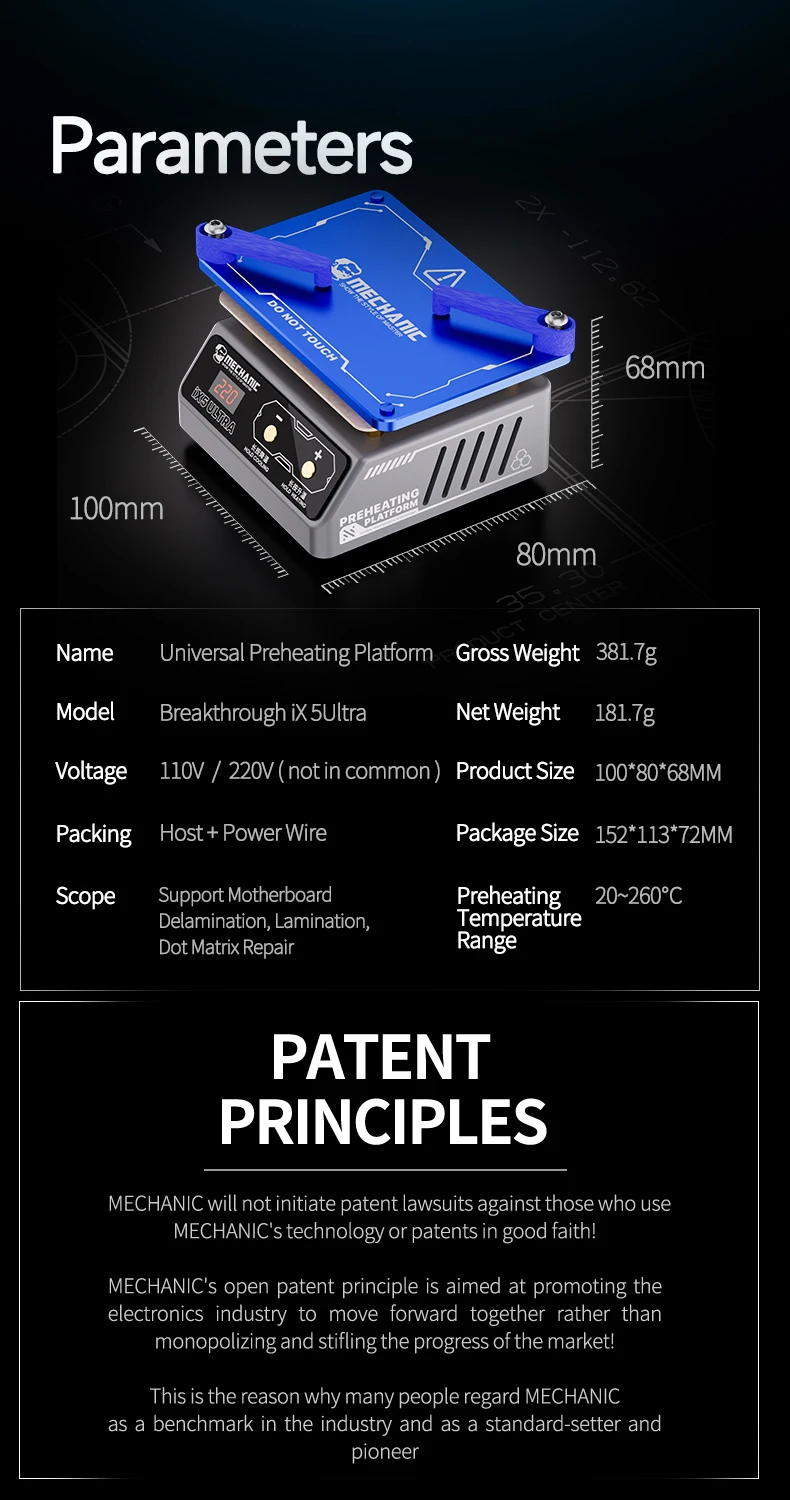 MECHANIC IX5 Ultra Universal Preheating Layering Platform for Motherboard Layering Tin Planting Glue Removal Heating Table Tool