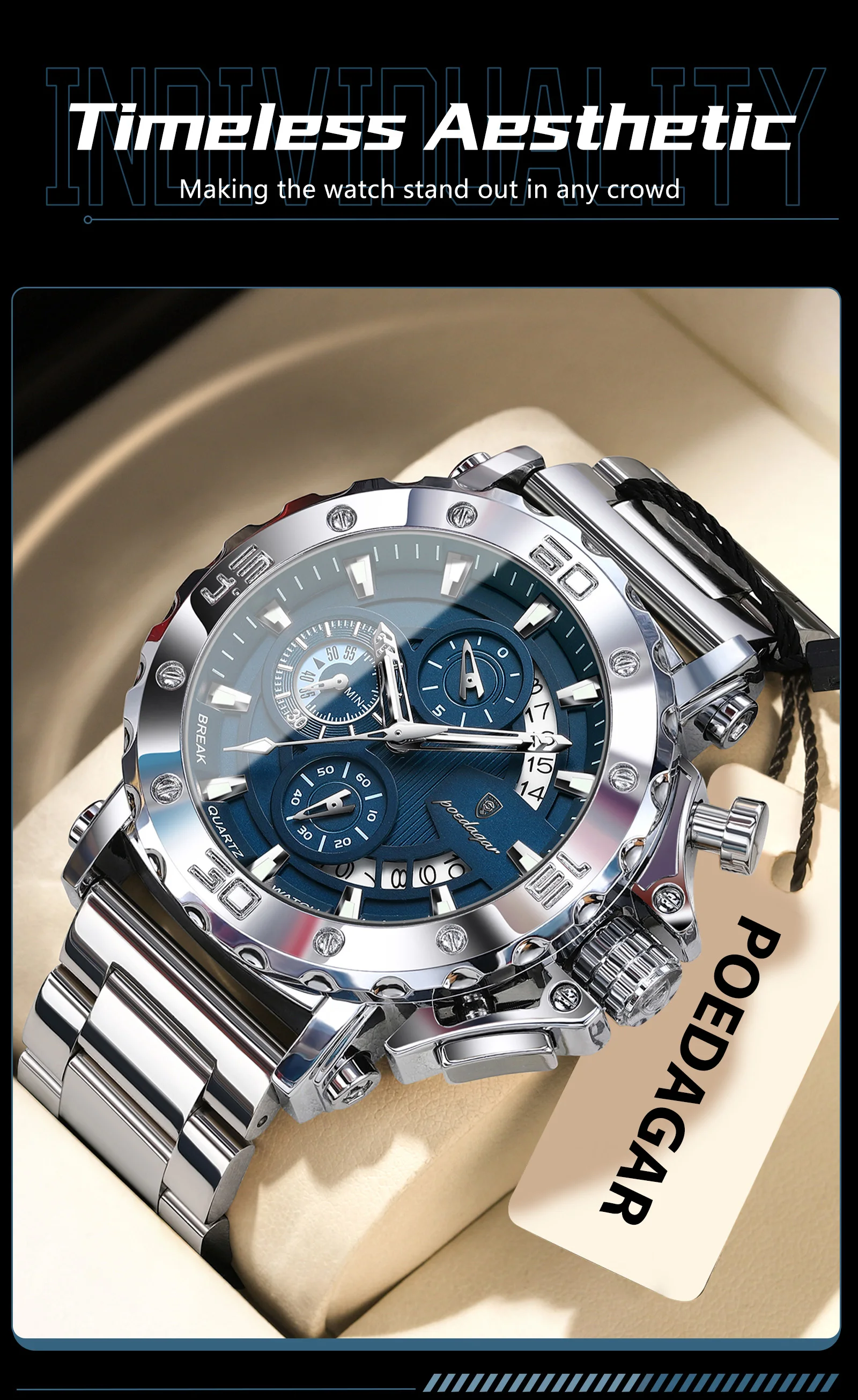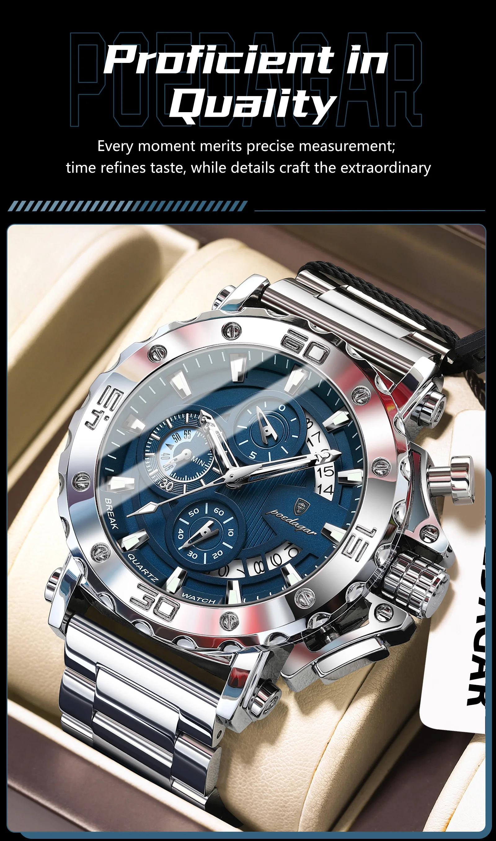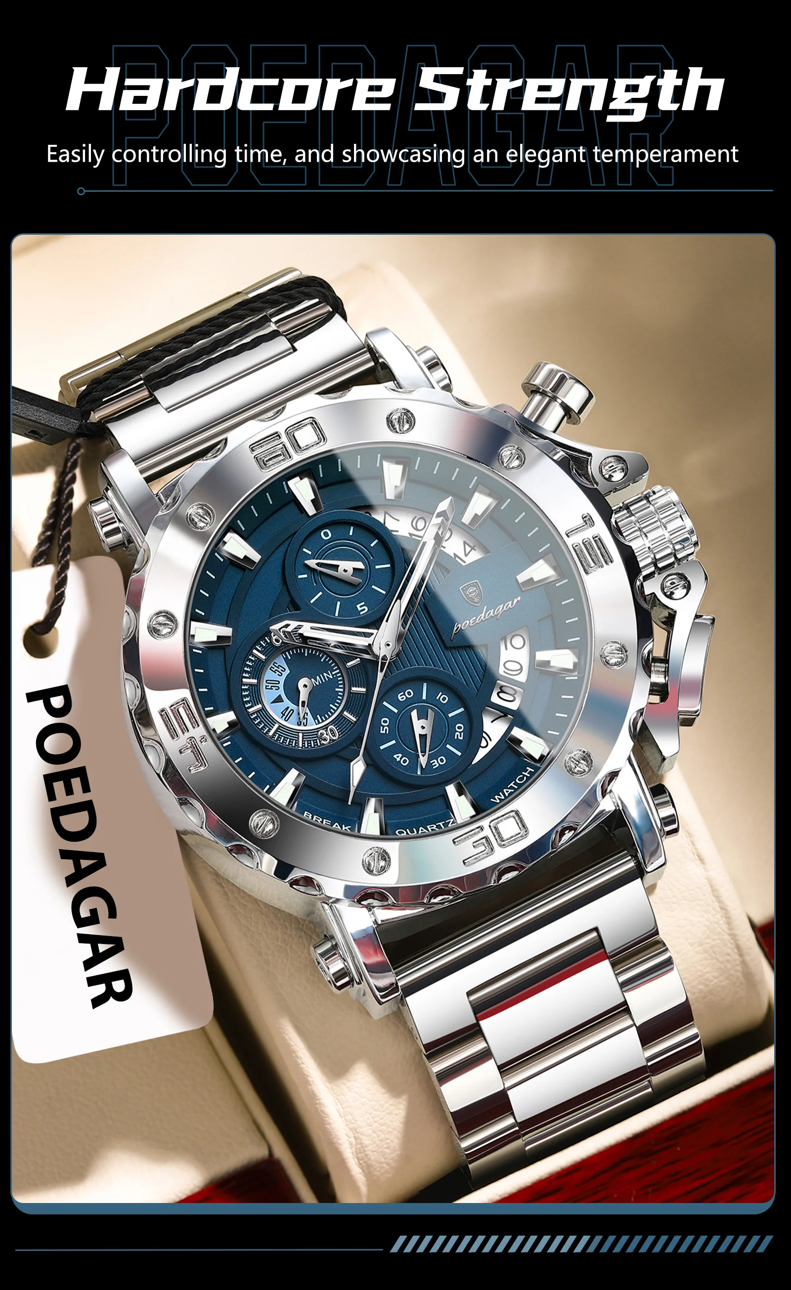 POEDAGAR Luxury Men's Watch Calendar Luminous Waterproof Man Clock Chronograph Stainless Steel Quartz Watches For Men Reloj Gift