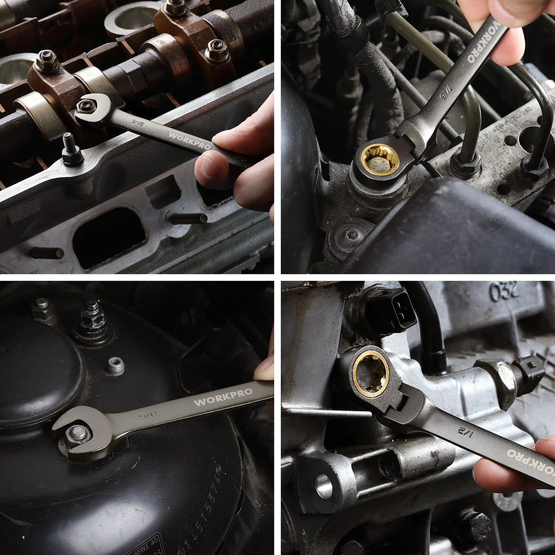 WORKPRO 8pcs Flex-Head Ratcheting Combination Wrench Set SAE 5/16-3/4 in 72-Teeth CR-V Constructed